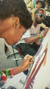 The other pieces from this show are available for your viewing pleasures on the ‘Art‘ page. 10 pieces were created for Faces. Contact me if you have any interest in a piece. Some have already sold, so bear that in mind. Below are some photos I actually remembered to take of people viewing my work. Enjoy!
